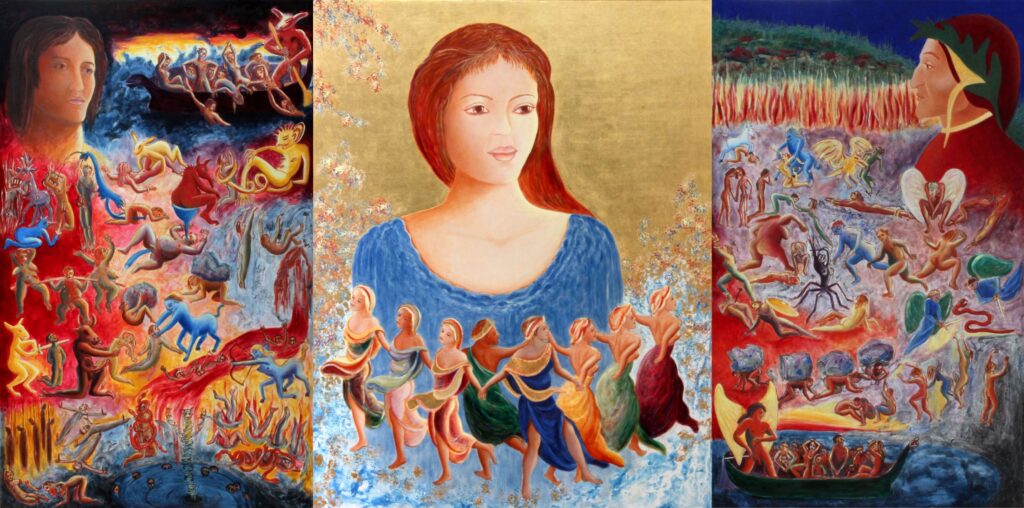 Rather than single paintings, Price often works in a series each exploring a cohesive narrative: Evolution of a Myth: spans ten paintings from “The Birth of Adam” to “Apocalypse, God on Her Bicycle”. Resurrection Adventures: a ten‑painting series from “The Mystic Marriage of Nefertiti to the Demi-God” to a “Personal Pieta”. Alchemical Metamorphoses references medieval European symbolism in relation to contemporary psychological states. A series begun in 2025 , Mayan Fantasies explores cross cultural iconography of ancient Mayan and European imagery.